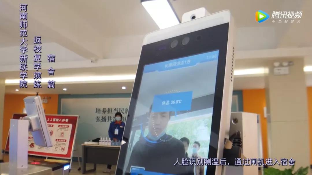“36.1℃,体温正常,请通行!”在南阳理工学院学生宿舍楼,进出宿舍的学生不再需要排长队等待老师拿测温设备一个一个测温通行。每个进出的学生只需在通过装有测温模块的人脸识别门禁闸机时,正常刷脸通行,同时,每个人的体温都会实时显示在屏幕上,只需要1秒钟便可精准知道体温是否异常。