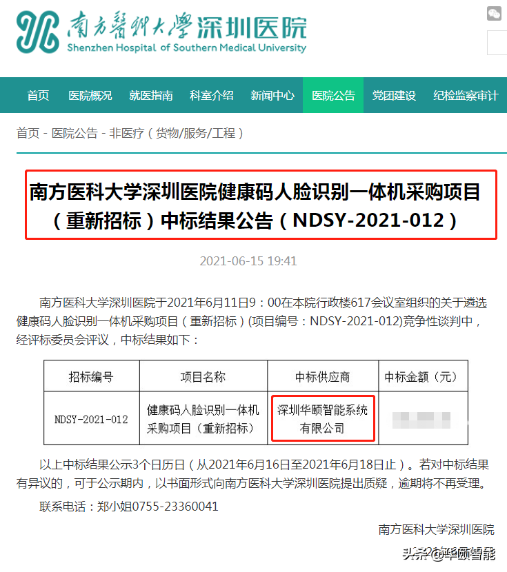 ▲南方医科大学深圳医院中标公告