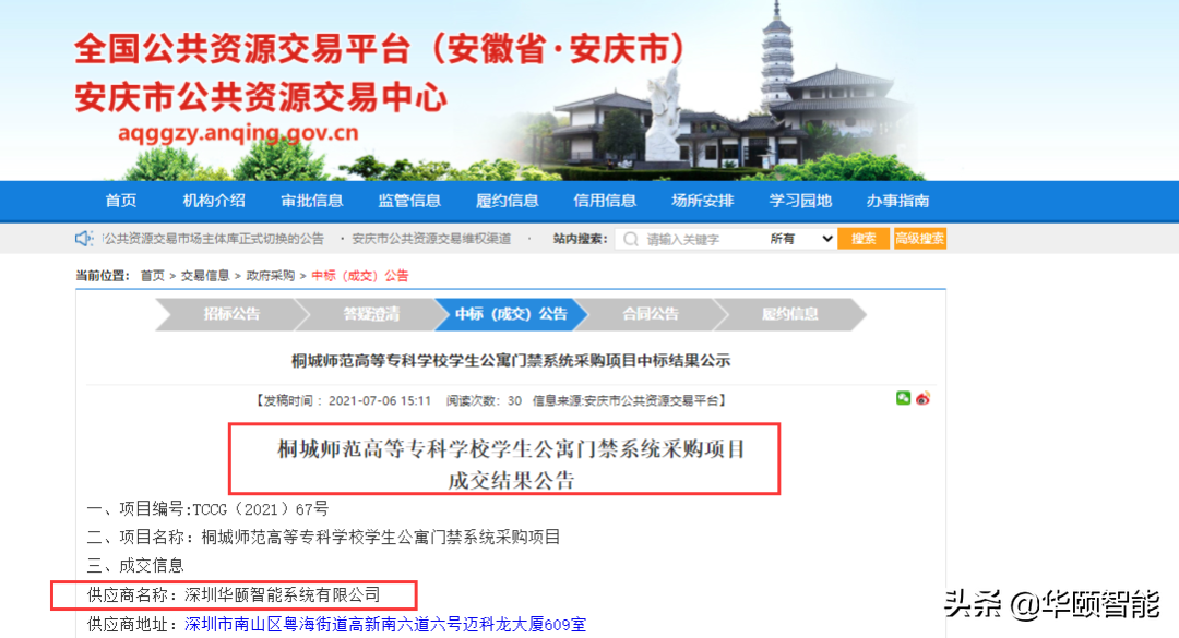 ▲桐城师范高等专科学校中标公告