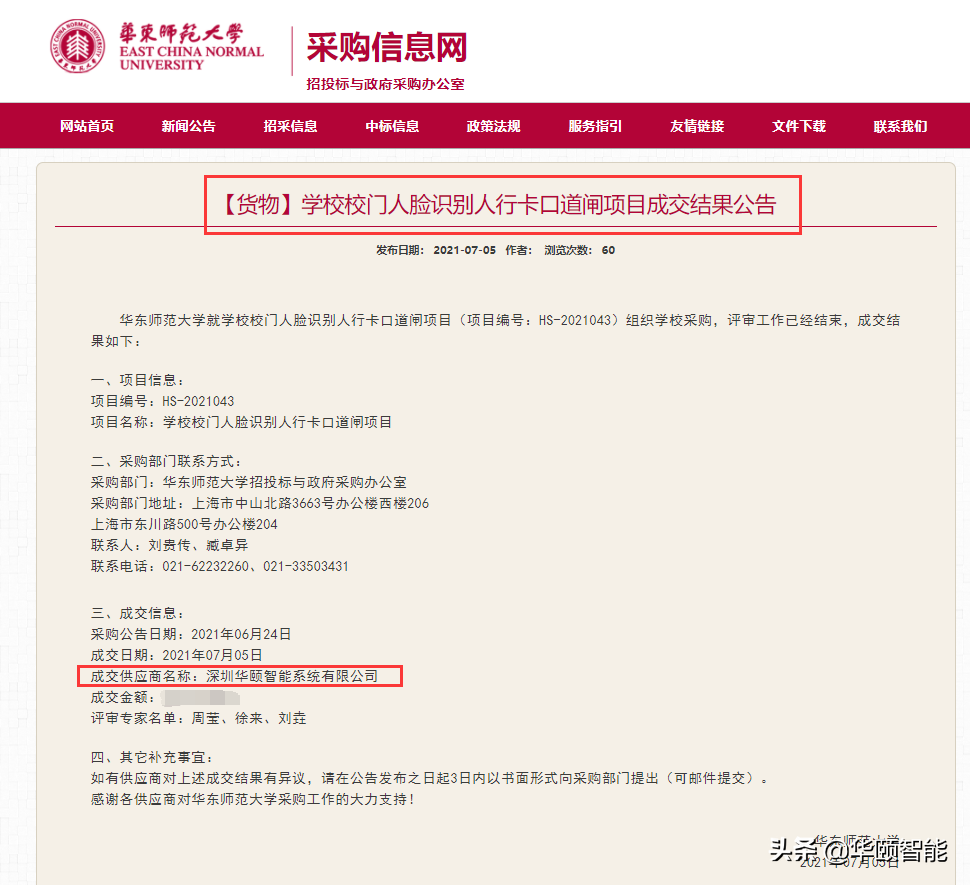 ▲华东师范大学中标公告