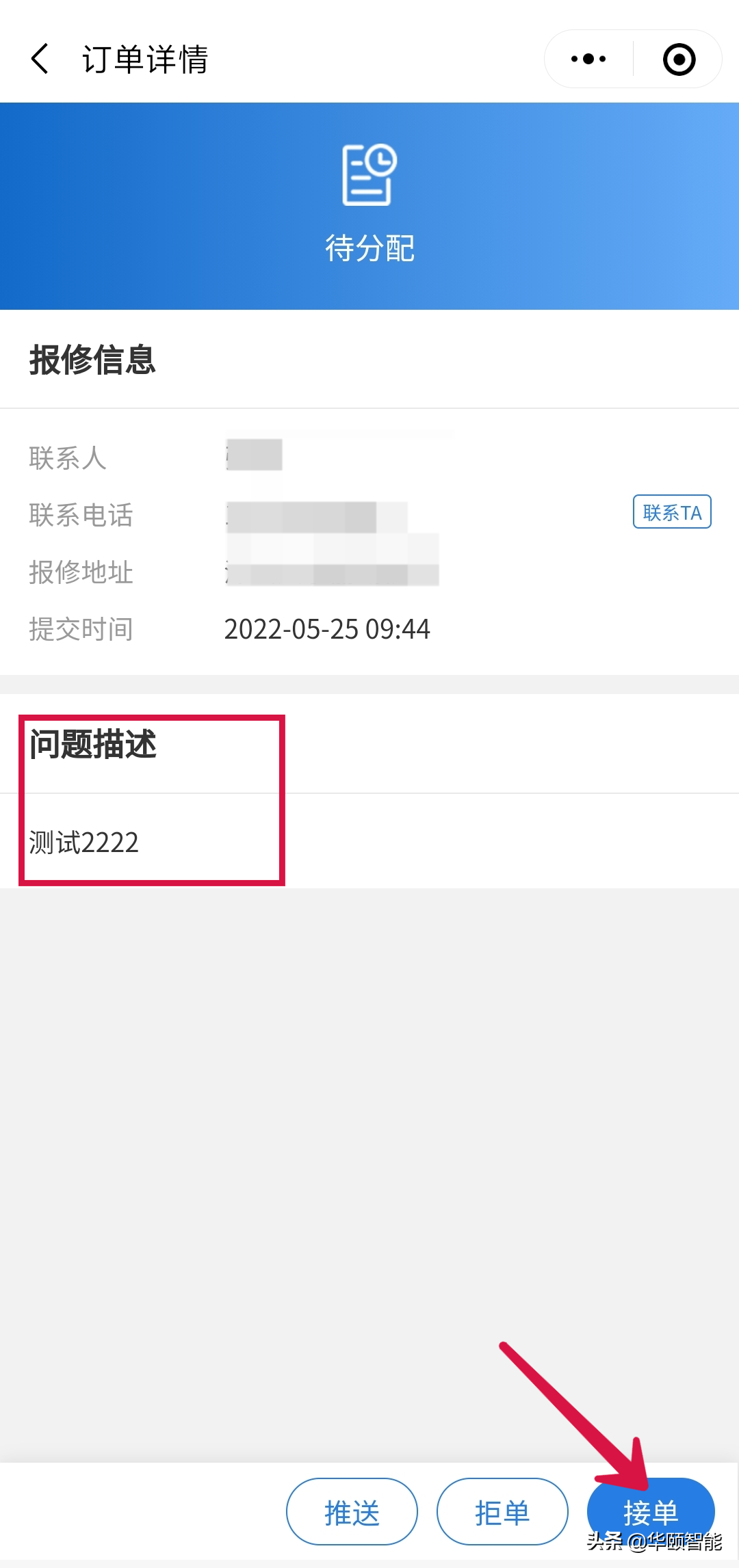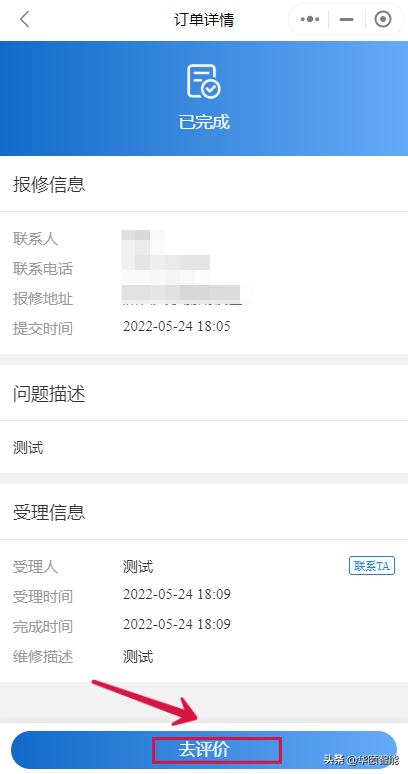 维修人员可通过工单报修快速受理用户报修、分派任务和电话回访等服务内容,也可以通过小程序端第一时间了解用户报修内容并且及时进行响应,极大地提高服务效率。
