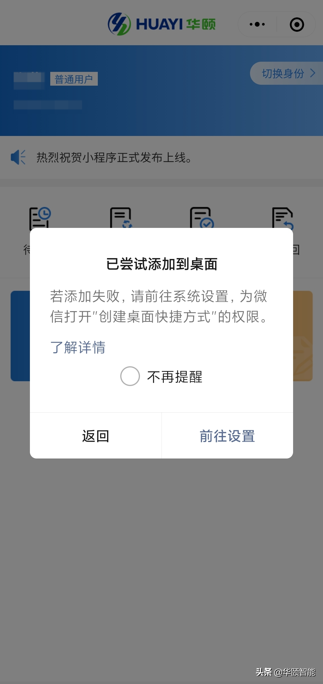 注:【添加到桌面】功能目前支持安卓机型(若添加失败,需要前往系统设置,为微信打开“创建桌面快捷方式”的权限)。苹果暂不支持。